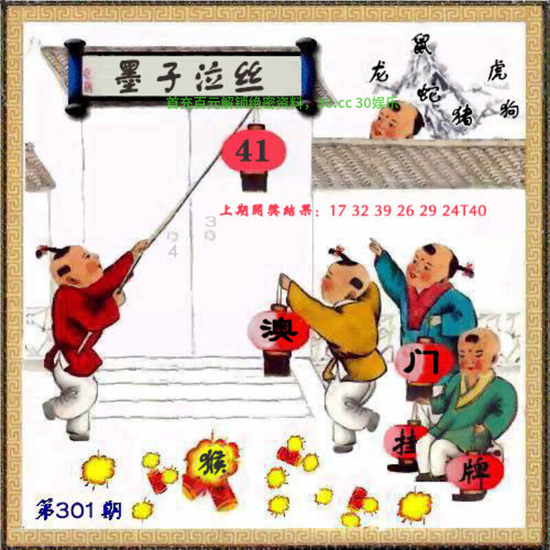 | 300期:开奖结果:17-32-39-26-29-24特:虎40 | |||||||||||