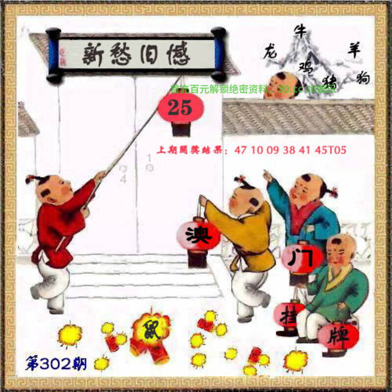 | 302期挂牌《新愁旧憾》 解释:因现状引发的烦恼与过往遗留的悔恨交织的复杂心境。 解:交织的复杂心境。解虎龙兔猴马猪,挂:25 爆:鼠。 综合:猴马虎龙兔猪牛 |